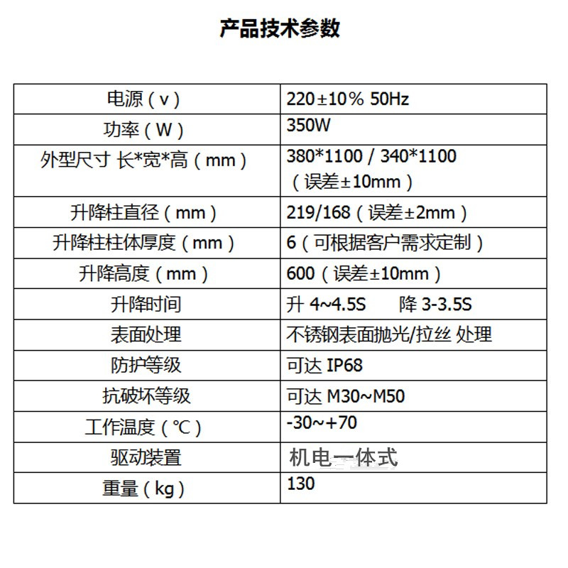 機電式全自動護柱通道用于公共車位管理,私人庭院車輛出入口控制等需求項目。機電式全自動護柱采用帶電子剎車的低壓直流電機為動力單元,安全可靠。考慮到機電式護柱的應(yīng)用特點,所有運動機構(gòu)及動力部件全部保護于地面以下,一旦遭遇車輛惡性碰撞,運動機構(gòu)及動力部件得以保全,護柱外筒便于快速更換,極大降低了維護成本。此外,鼎隆機電柱獨特的“Cup-inversion”設(shè)計從結(jié)構(gòu)上保障了機電全室外惡劣環(huán)境下的穩(wěn)定運行,避免了同類產(chǎn)品遇水故障的隱患。
